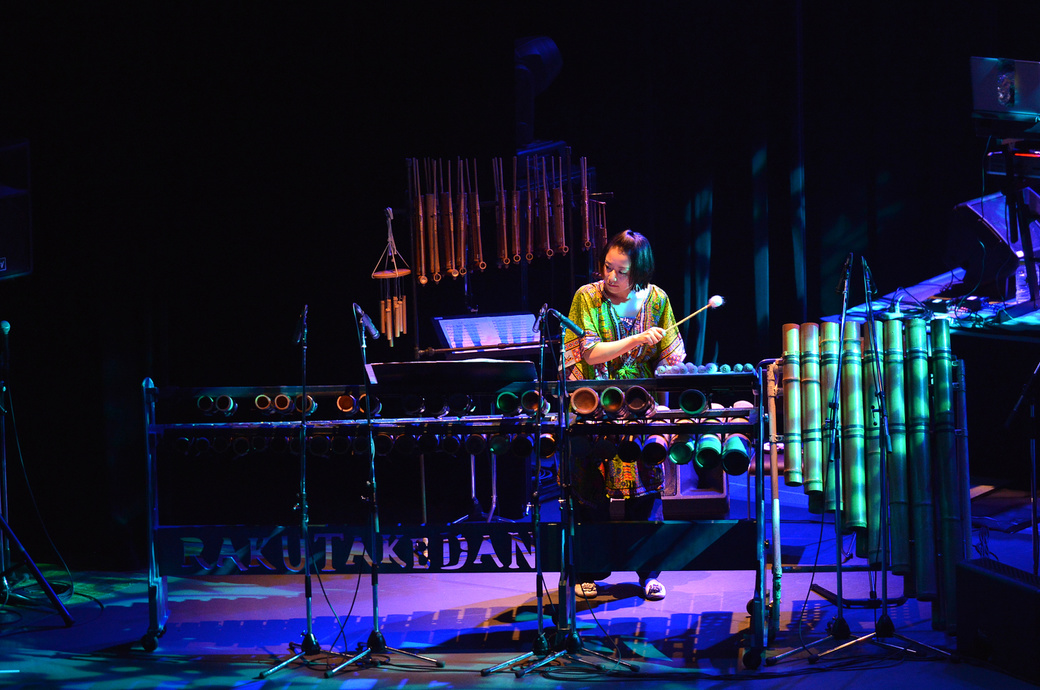 また竹マリンバ奏者として、作曲家の手使海ユトロ氏、尺八奏者の三橋貴風氏が率いる